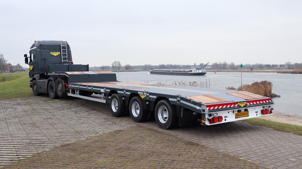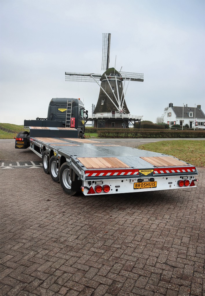 Dieser vielseitige Auflieger ist mit einem überwiegend hölzernen Ladeboden für extra Grip ausgestattet. Dank eines Radstands von 8,650 mm ist eine optimale Sattellast garantiert. Dieses geschicktes Design ermöglicht ein sicheres und einfaches Be- und Entladen von Fahrzeugen mit Reifen und Ketten. Ein gut durchdachter Allrounder, entwickelt für den Mehrzweckgebrauch. Robust gebaut mit einer langen Lebensdauer, genau wie Sie es von Broshuis erwarten.