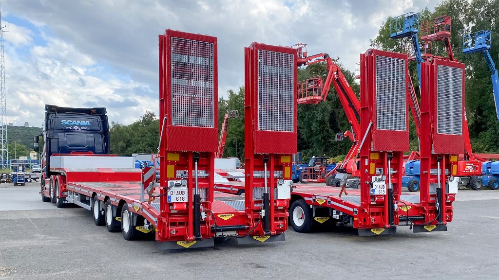 The flexibility of the Broshuis semi low loaders fits perfectly with the fast-moving rental market. Being able to transport virtually any load safely and efficiently is essential. With multiple TÜV-certified 10-ton lashing points, stakes and stake pockets, securing every load is both reliable and safe.