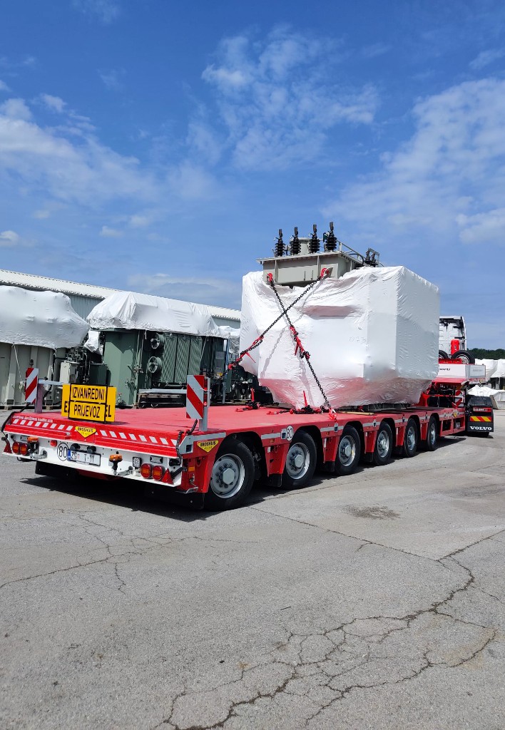 This 6-axle semi low loader has an extremely high payload due to its low weight and high axle capacity. Because the trailer is extendable, overlength cargo can also be accommodated.