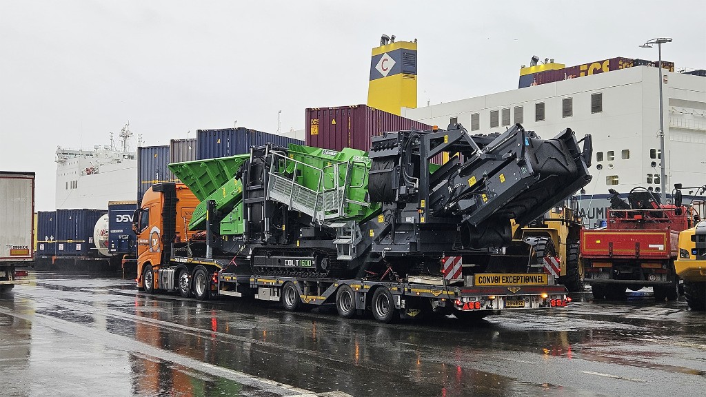 Recently, Timo handled a transport from the port of Zeebrugge to Antwerp, carrying a brand-new Terex Colt 1600 screening plant measuring 14.5 meters in length. An impressive machine, but exactly the type of load his semi low loader is designed for. By cleverly combining the ECO ramp with foldable supports and a separate aluminum loading ramp, he creates a safer, longer, and less steep loading angle. This allows him to load the machine onto the trailer in a controlled way.