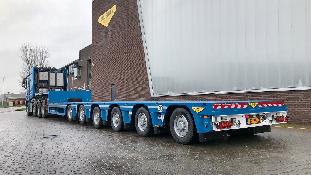 This 8-axle pendle axle semi low-loader is designed as a 2 + 6 version. This version extends to 34 meters. The PL2 pendle axles ensure a strong trailer, with a high payload.